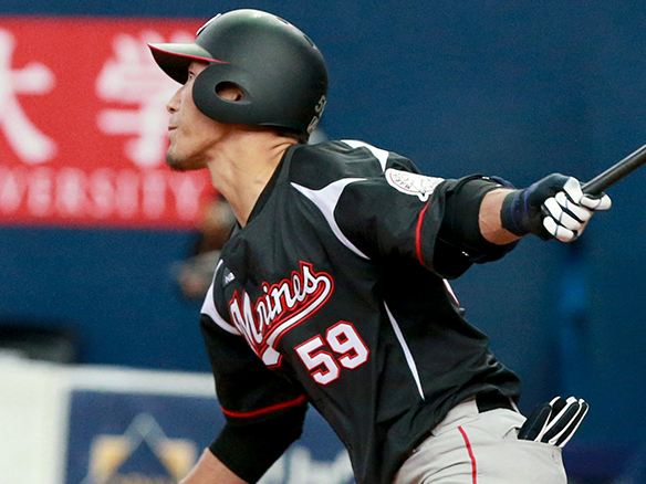 5番 角中 右翼三 2アウト1,2塁の1-0からライトへのタイムリースリーベースでロッテ勝ち越し! オ2-4ロ 3塁 ![]() 2