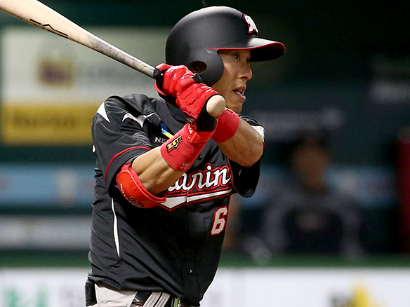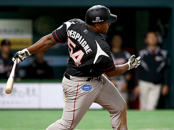 上手いバットさばきでレフトへ安打を放つデスパイネ