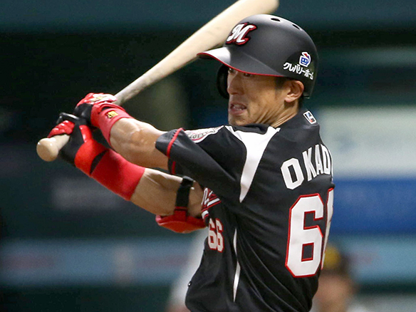 1番 岡田 右翼二 ランナー2塁からライトへタイムリーツーベース! ソ4-3ロ 2塁 ![]() 4