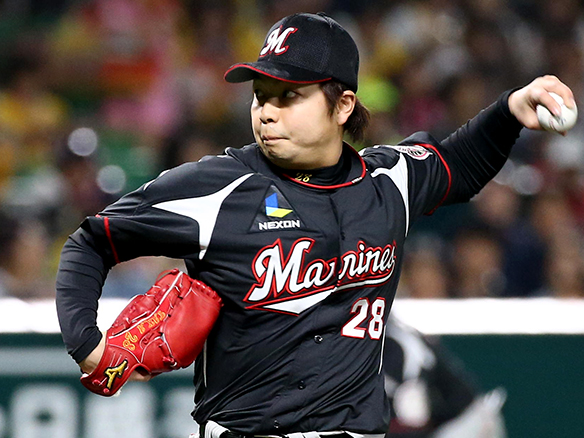 投手 藤岡 9番 斐紹 右犠飛 1アウト満塁の2-2からライトへの犠牲フライを放つ ソ3-0ロ 2アウト1,2塁 ![]() 3