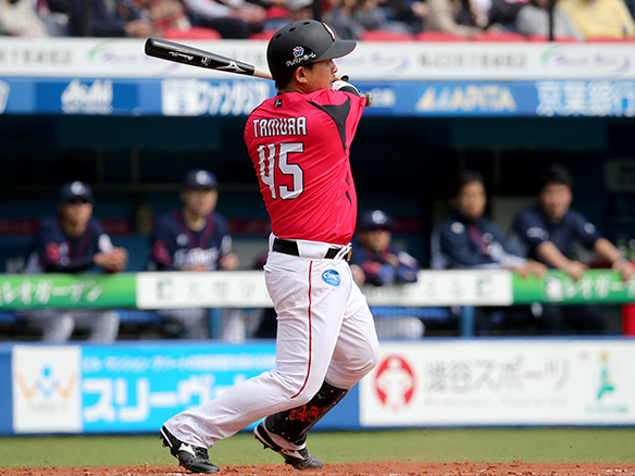 8番 田村 左中二 ランナー1,2塁からセンターへのタイムリーツーベースでロッテ先制! ロ2-0西 2塁 ![]() 2