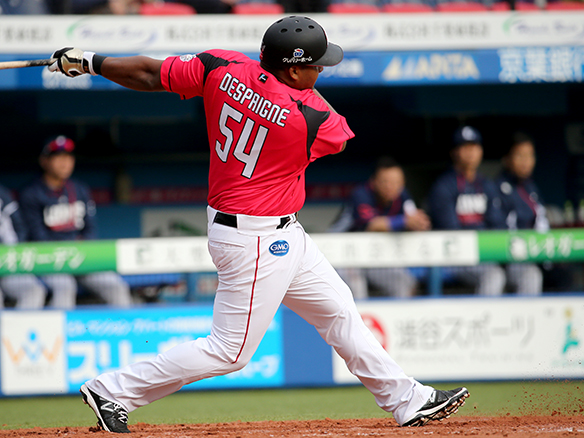 4番 デスパイネ 空三振 空振りの三振を喫する 2アウト |