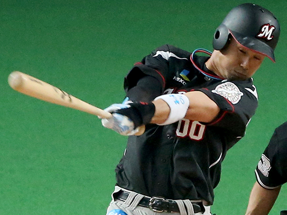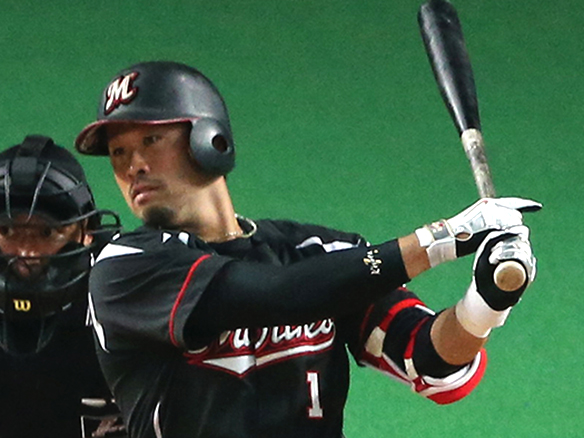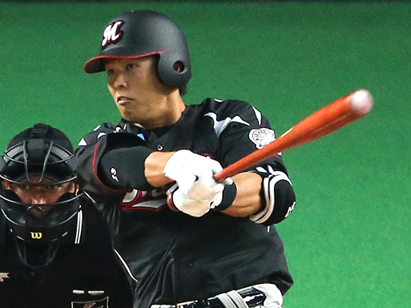 6番 井口 中安 センターへのヒットを放つ 1塁 |