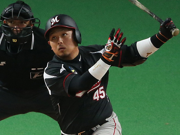 6番 レアード 左安 レフトへのヒットを放つ |