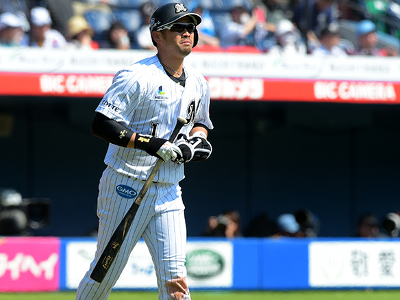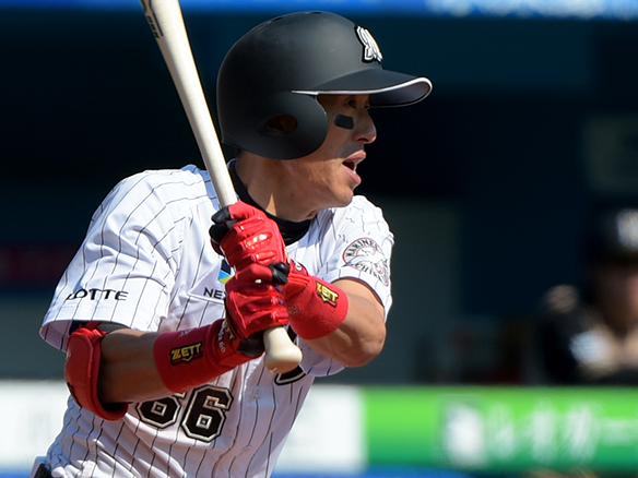 9番 根元 左犠飛 ランナーフルベースの1-2からレフトへの犠牲フライを放つ ロ5-0日 2アウト1,2塁 ![]() 5