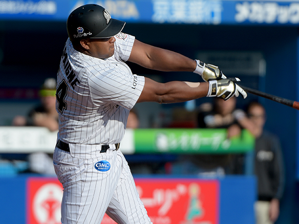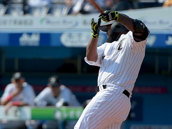 6番 ナバーロ 四球 151キロのストレートを見送りフォアボールを選ぶ 1塁 |