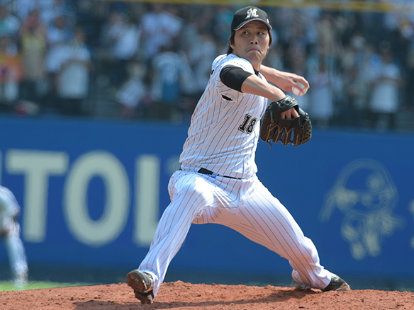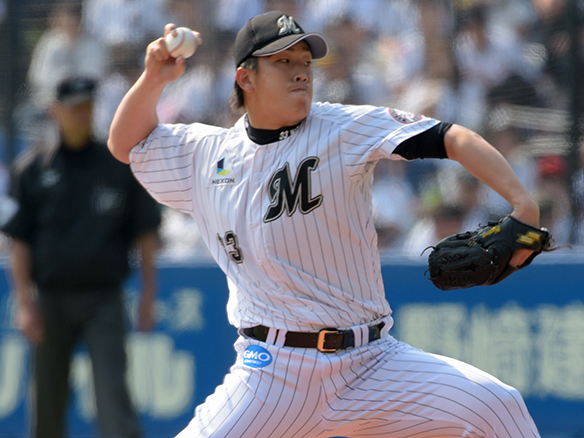 投手 大嶺祐 7番 近藤 四球 一度もバットを振ることなくフォアボールを選ぶ 1塁 |