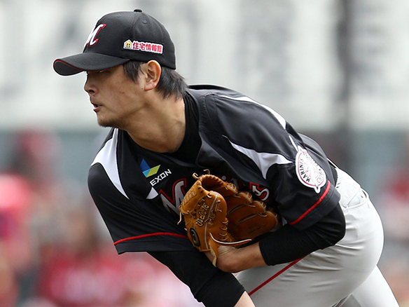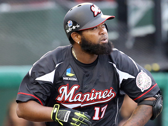5番 ナバーロ 四球 低めのストレートを見送りフォアボールを選ぶ 1塁 |