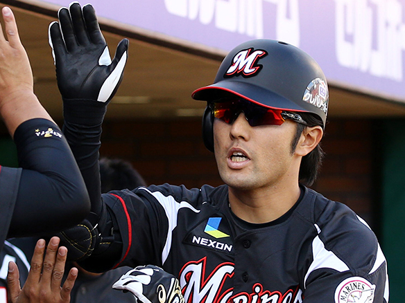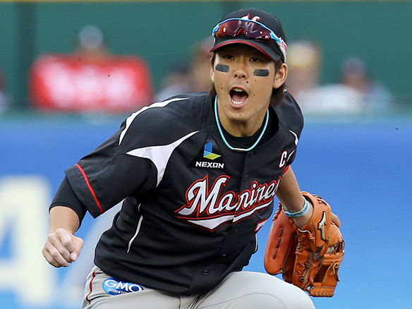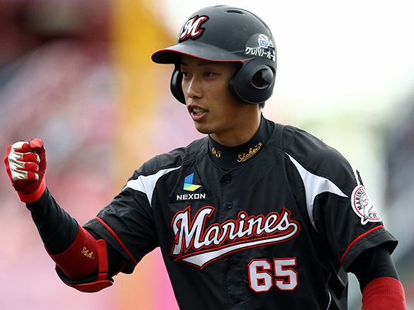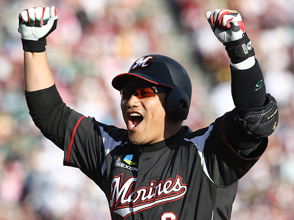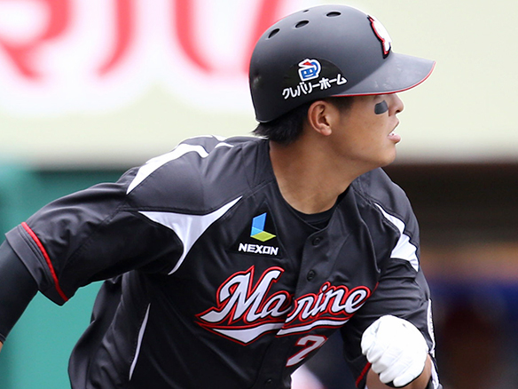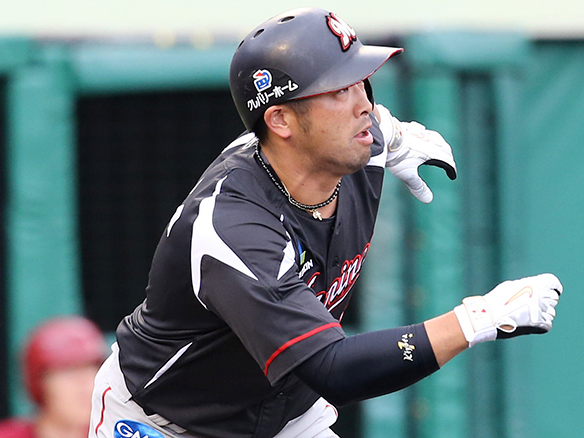 5番 ナバーロ 中安 0アウト1,3塁の2-2からショートへのタイムリー内野安打 楽3-2ロ 1,3塁 ![]() 3