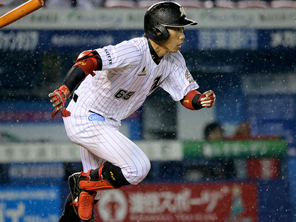 鈴木がライト前へ強烈な打球を放ちチーム初ヒットを記録
