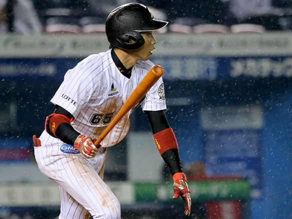 投手 唐川 9番 駿太 左飛 外角のカーブを打つもレフトフライ 1アウト |