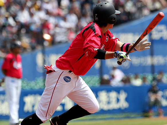 2番 鈴木 左安 レフトへのヒットを放つ 1塁 |
