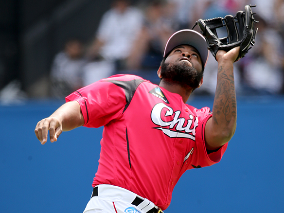 ナバーロは一塁線への飛球を危なげなく捕球した