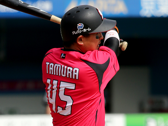 田村が低めの球を上手く打ち返し左前安打で出塁