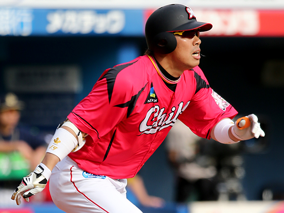 5番 角中 左安 レフトへのヒットを放つ 1,2塁 |