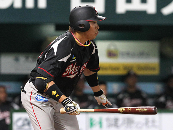 5番 角中 中安 センターへのヒットで出塁 1塁 |