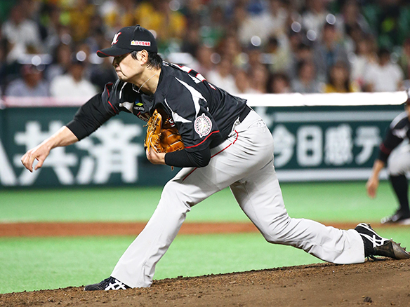 5番 角中 左飛 外角のストレートを打つもレフトフライ 3アウトチェンジ |