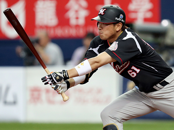 5番 角中 中安 ランナー2,3塁の1-2からセンターへのタイムリーヒット オ6-4ロ 1塁 ![]() 6