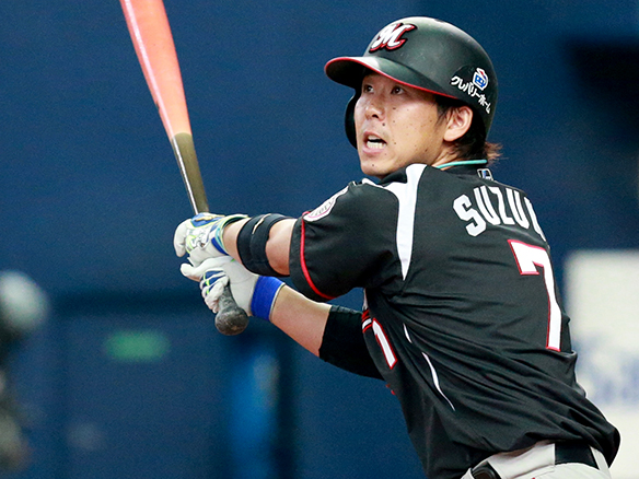 鈴木が外野へ犠飛を飛ばし同点に追い付いた