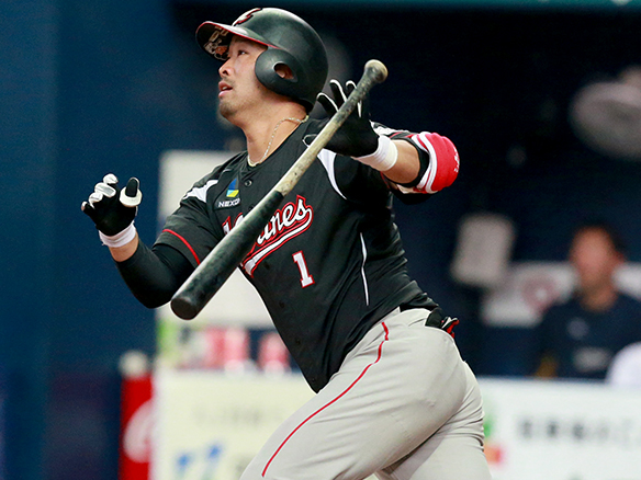 センター前へ打ち返し適時打を放った細谷