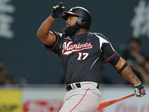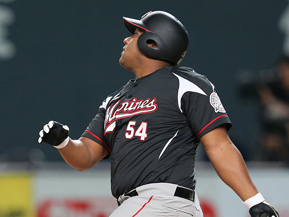 6番 ナバーロ 左本 0-1からスタンド中段に飛び込むホームランを放つ 日0-3ロ ![]() 0