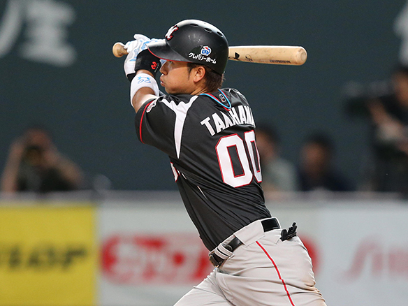 3番 田中賢 中安 1アウト2塁からセンターへのヒットで出塁 |