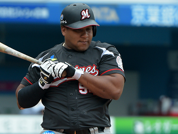 内角の直球を見送りストレートの四球で出塁したデスパイネ
