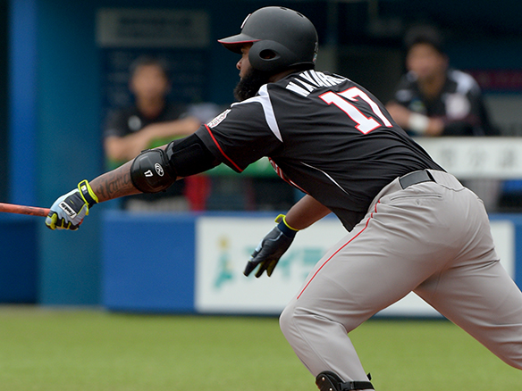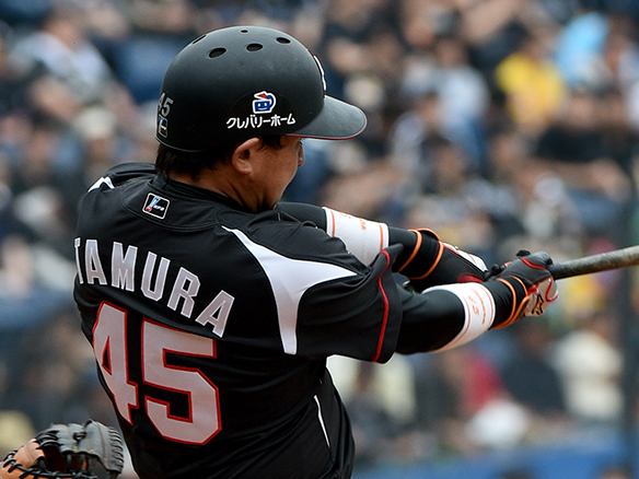 ボール球を上手くバットに当て安打を放ったナバーロ
