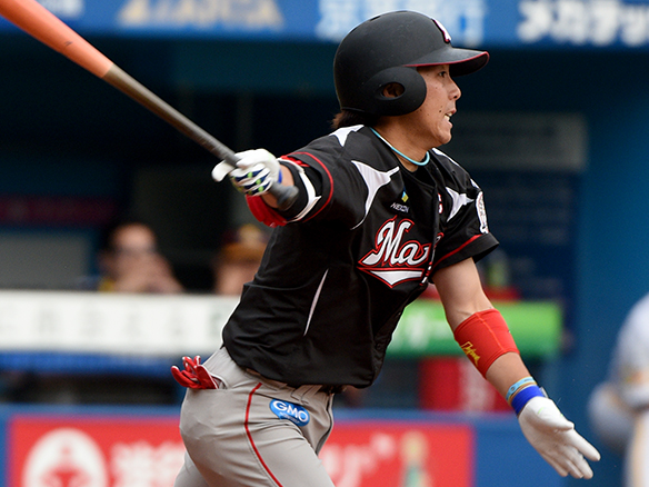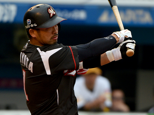 投手 千賀 3番 角中 左安 レフトへポテンヒットを放つ 1塁 |