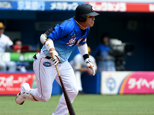 7番 中村晃 左安 レフトへのヒットを放つ 1塁 |
