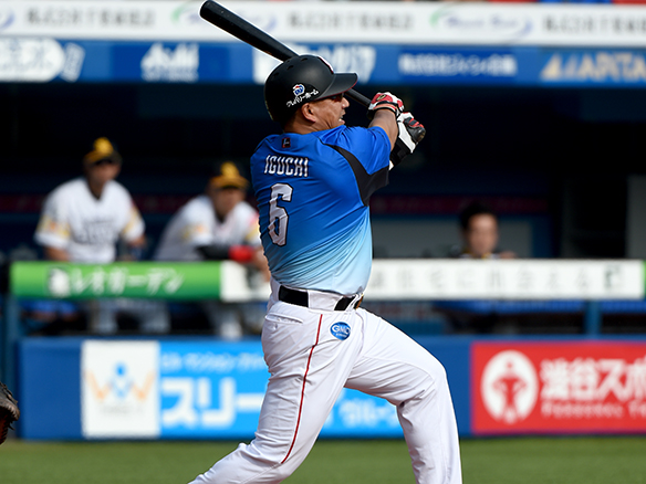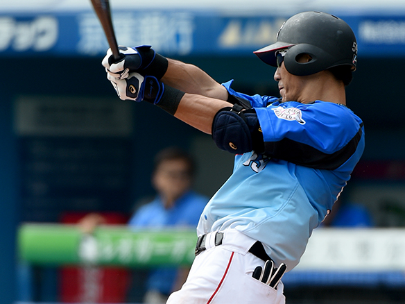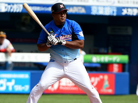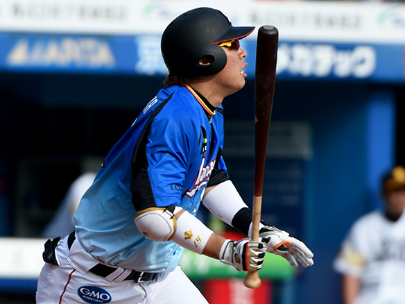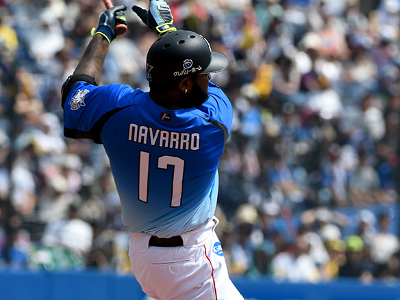 5番 ナバーロ 右安 ライトへのヒットを放つ 1,3塁 |