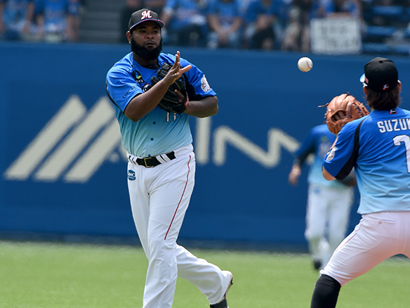 5番 ナバーロ 空三振 ワンバウンドした球に空振り、三振を喫する 3アウトチェンジ |