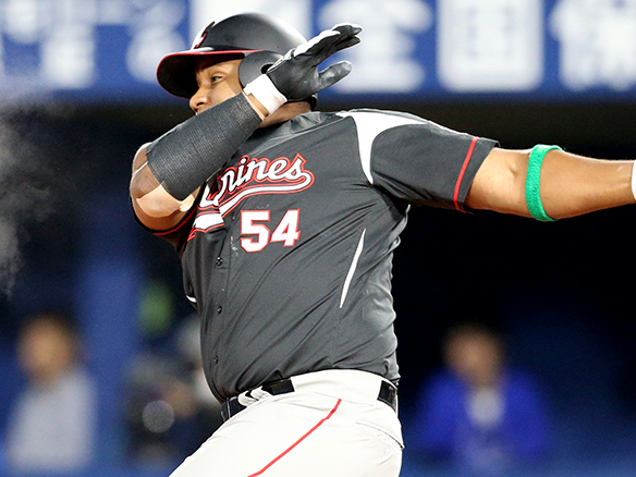 5番 ナバーロ 空三振 外角のフォークに空振り三振でバッターアウト 2アウト |