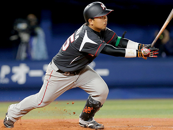 投手 久保康 4番 デスパイネ 三安 サードへの内野安打 1塁 |