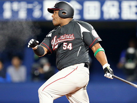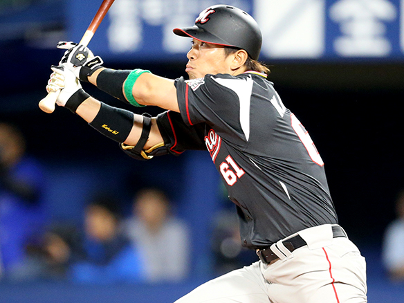 3番 角中 左中二 レフトへのツーベース 2塁 |