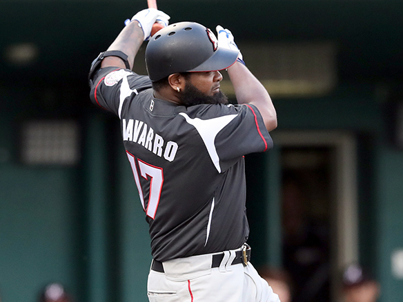 ナバーロが直球を捉えレフトスタンドへ運んだ!