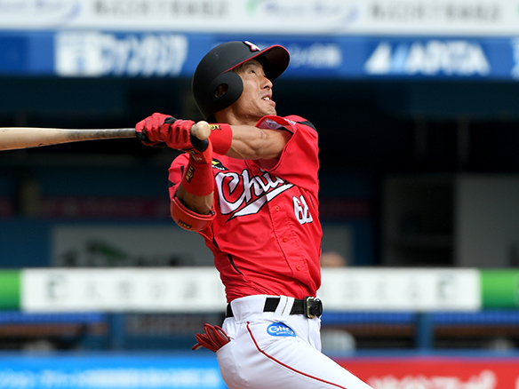9番 若月 中安 センターへのヒットを放つ 1塁 |