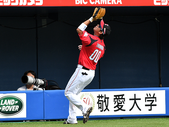 4番 T-岡田 左飛 1アウト2塁から内角のカーブを打つもレフトフライ 2アウト |
