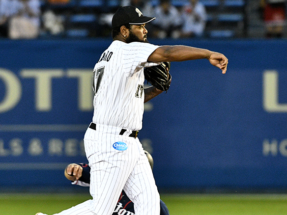 5番 ナバーロ 四球 一度もバットを振ることなくフォアボールを選ぶ 1,2塁 |