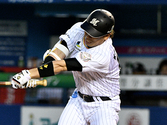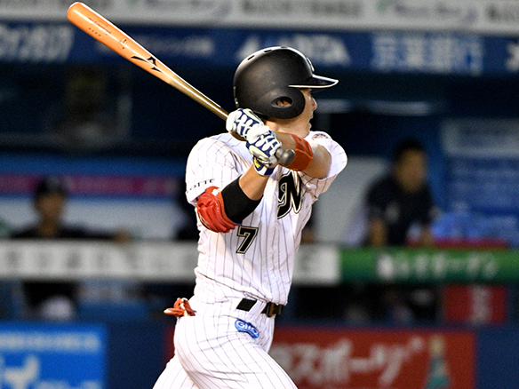 1番 金子侑 遊安 ショートへの内野安打 1塁 |