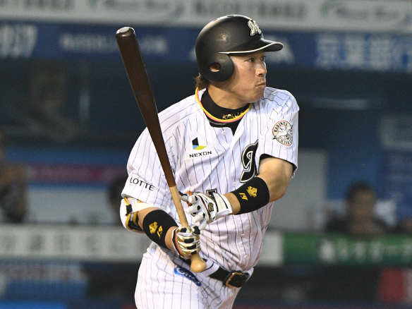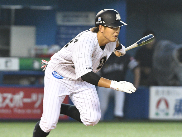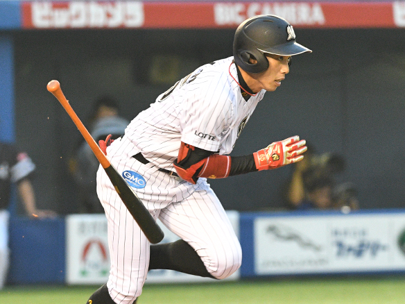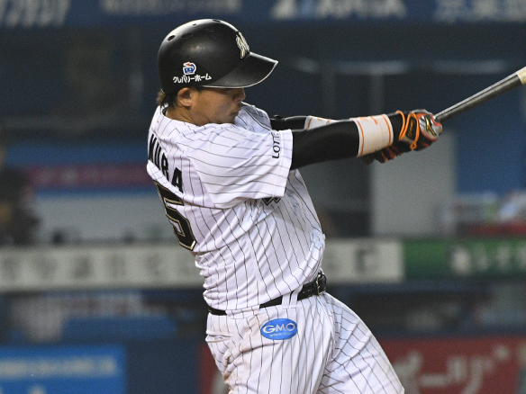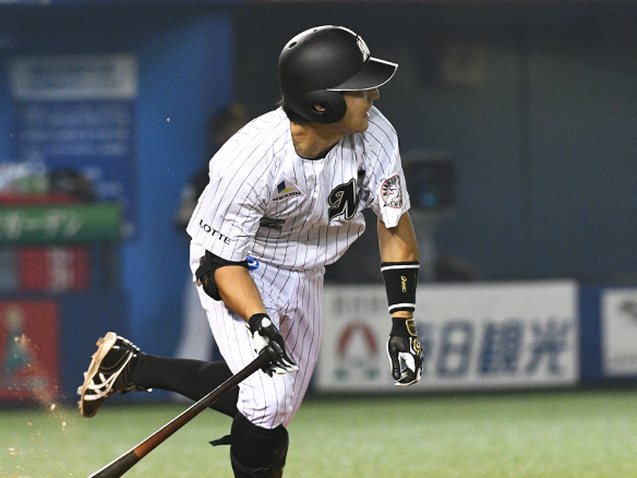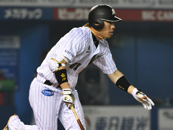 3番 角中 右安 ライトへのヒットを放つ 1塁 |