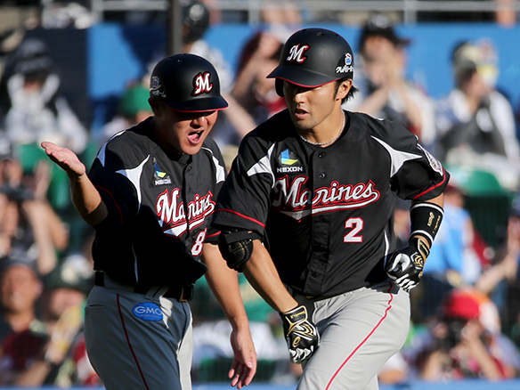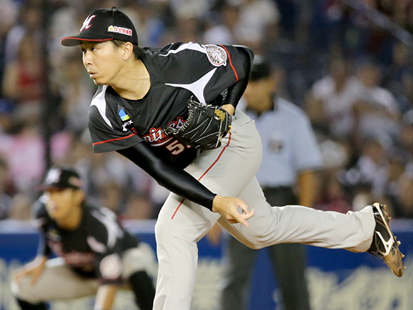投手 ミコライオ 投手交代:松井裕 守備交代:ライト岡島 守備変更:聖澤→レフト |