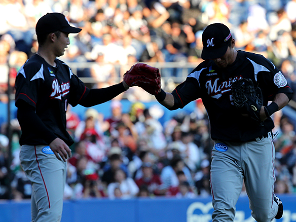 投手 益田 投手交代:大谷 守備変更:鈴木→サード 守備変更:平沢→ショート 守備変更:中村→セカンド |