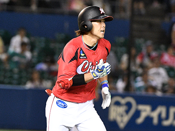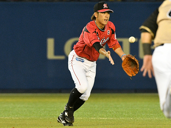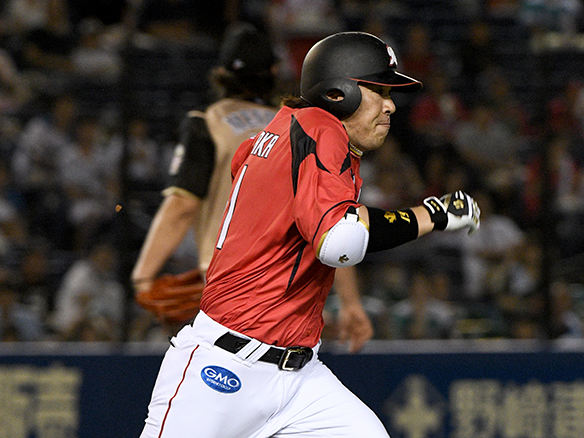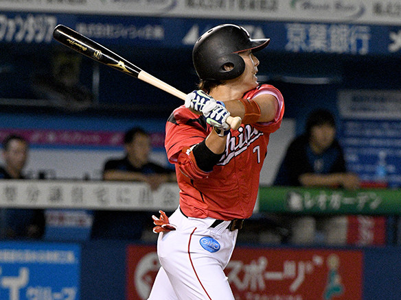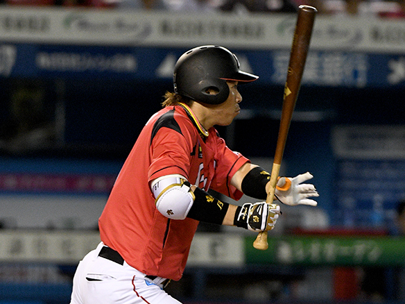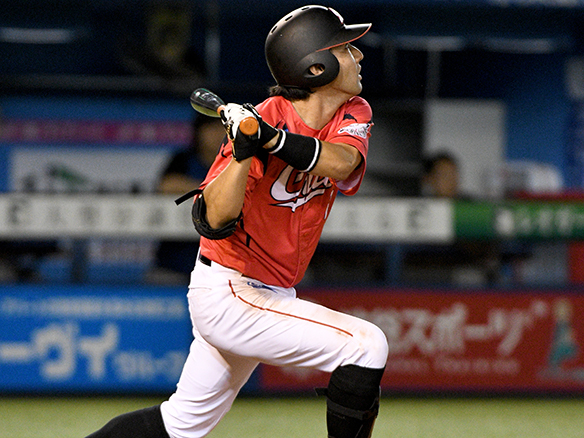 9番 中島卓 左安 外角のスライダーをレフトへ打ってヒット |