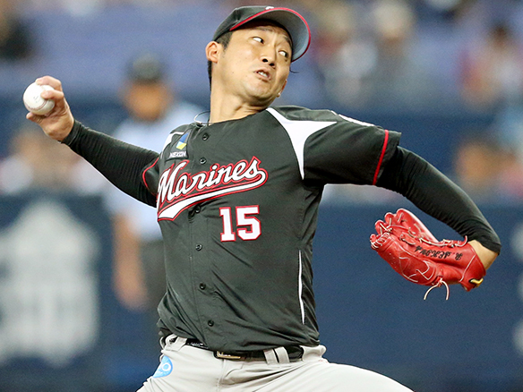 投手 海田 5番 福浦 四球 フォアボールを選ぶ |