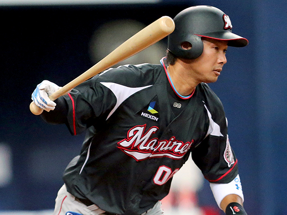 3番 糸井 中安 ランナー1塁 外角高めのストレートをセンターへ打ってヒット |