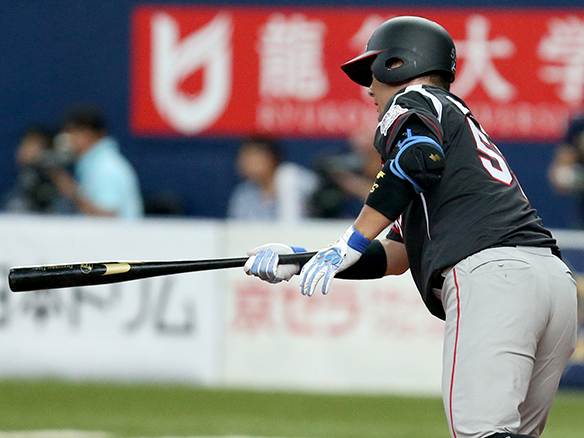 3番 糸井 右安 外角高めのカットボールをライトへ打ってヒット |