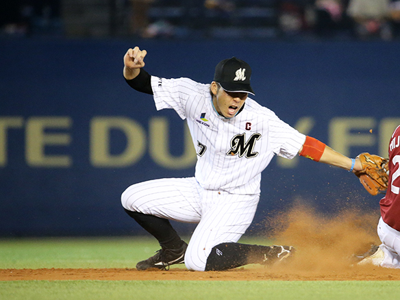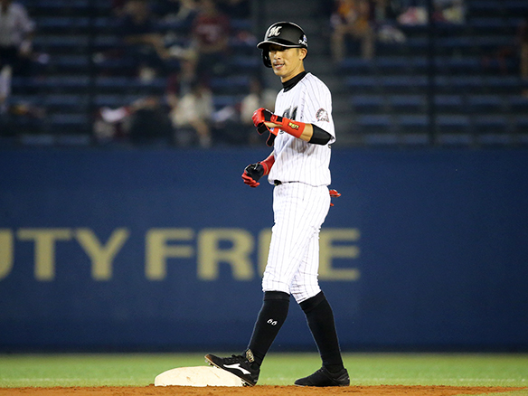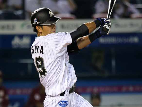 3番 角中 中安 低めのスライダーをセンターへ打ってヒット |