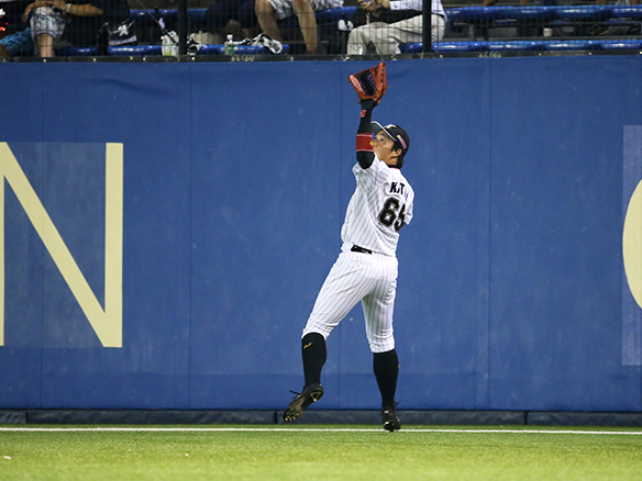加藤はウィーラーの打球をフェンス手前でキャッチ