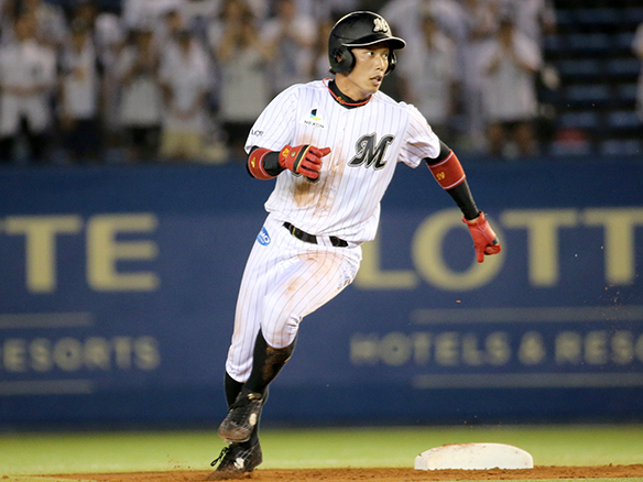 3番 角中 右中二 外角のストレートをセンターへ打ってツーベース |